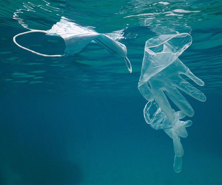 Pase den urte honetan 52 mila milioi maskara ekoiztu dira. Modelo kirurgikoetako batek 3-4 gramo polipropileno eduki ditzake. Maskarak ez kutsatzeko babesak direnez, birziklatzeko zailak izan litezke, kutsatzeko arriskua gehitzen baita honela. Horietako askok gainera, ozeanoetan amaitzen dute hondakinen kudeaketa desegokiagatik edo gainezka daudelako.