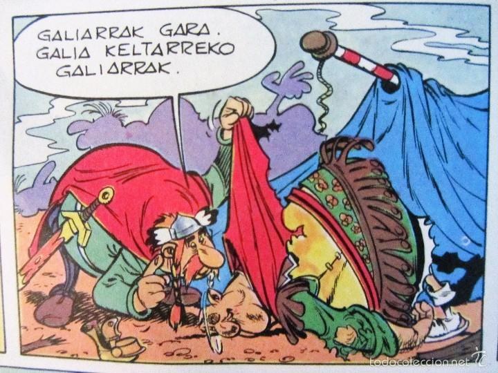 Euskaraz irakurri daitezke Uderzo eta Goscinnyren komiki guztiak; Mas-Ivars Editores argitaletxeak argitaratu zituen lehen komikiak euskaraz, eta ondoren Elkar argitaletxeak Asterixen album guztiak kaleratu zituen.