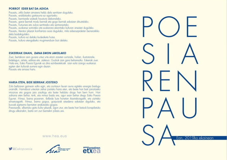 Aurten ez da Eako Poesia Egunik ospatuko