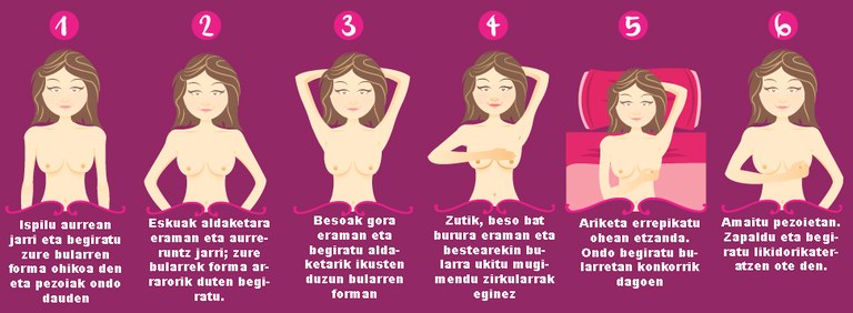 Urtero bezala, urriak 19 Bular Minbiziaren Aurkako Eguna ospatzen da. Hain zuzen, minbizi mota hori da emakumeek gehien jasaten dutena, baina adi, badira bularreko minbizia izaten duten gizonak ere, proportzio askoz ere murritzagoan bada ere. Egun honek, gaitzaren aurkako ikerketan gehiago inbertitu dadin eta prebentzio kanpainak zabaldu daitezen aldarrikatzeko balio du; baina, ze prebentzio egin dezake norberak beranduegi izan aurretik? Bazenekien zure burua ukituz inork baino lehenago detektatu dezakezula edozein aldaketa? Eta gogoratu aldiro azterketa medikuak egiteaz! Jarraian, zure burua ukitzeko aholkuak topatuko dituzue: