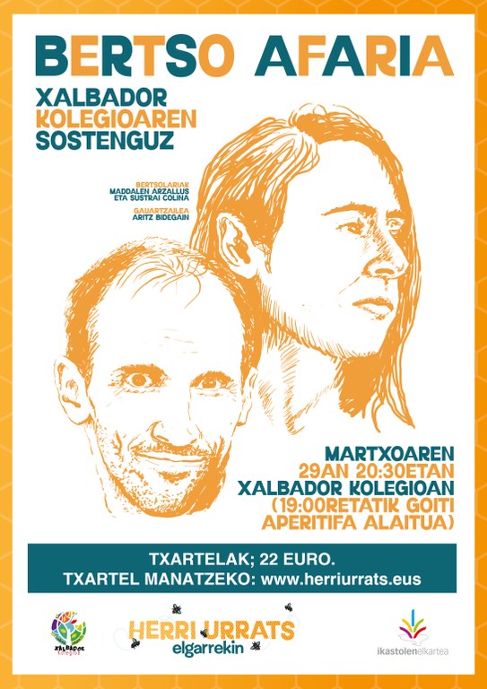 Urtero bertsoarekin lotutako ekimen bat antolatzen du Herri Urratsek eta oraingoan bertso afaria egingo dute, martxoaren 29an, Kanboko Xalbador kolegioan, bere sostenguz. Aperitifa alaitua egingo dute 19:00etatik aurrera eta ondoren, 20:30ean, bertso afaria, Maddalen Arzallus eta Sustrai Colina bertsolariekin. Aritz Bidegain arituko da gai-jartzaile. Sarrerak hemen eskura daitezke.