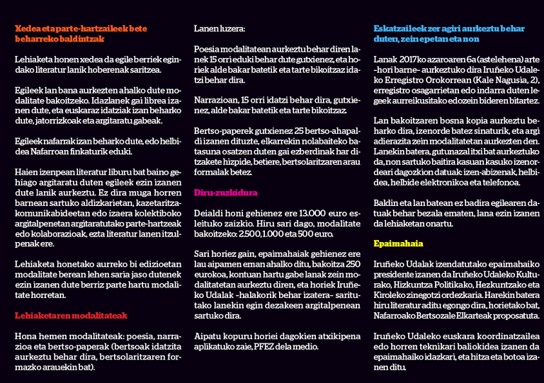 EGILE BERRIENTZAKO EUSKARAZKO LITERATUR LEHIAKETA IRUÑEAN