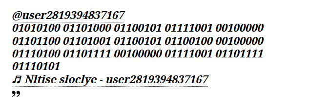 USER2819394837167k argitaratutako bideoetako bat. Kode bitarrean idatzitako mezu ezkutu batekin.
