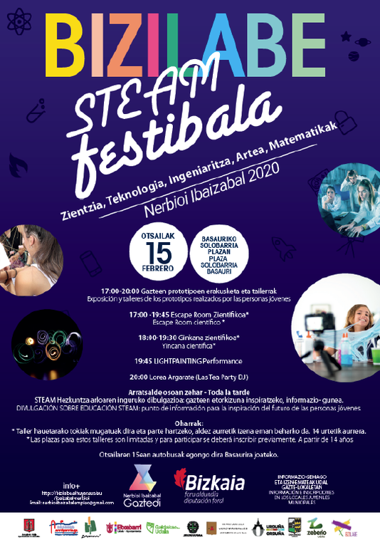 Otsailaren 15ean Bizilabe STEAM Festibala Basaurin. Nerbioi-Ibaizabaleko gazteek lau hilabetetan zehar Bizilabe tailerretan ikasitakoa erakusteko jaialdia izango da. Ikertzaile profesionalekin batera, eurak izango dira jaialdiko ekintzen gidari. Besteak beste, zientzia eta teknologia-tailerrek, ginkana-zientifikoak edota “Escape-room”-ak, osatuko dute egitaraua. Lorea Argaratek (Telekomunikazio ingeniaria eta Las Tea Party DJ bikoteko kidea) emango dio amaiera jaialdiari.