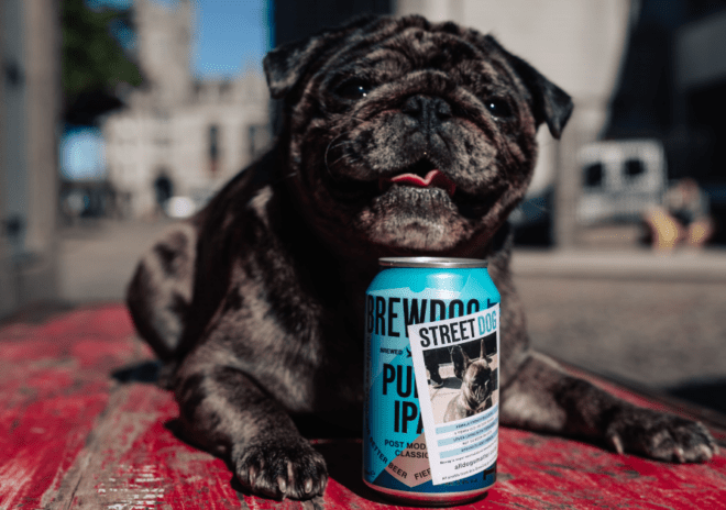 BrewDog etxeko garagardoa egiten duen marka eskoziarra da eta bi txakurtegirekin elkarlanean zabalkundea behar duten txakurren argazkiak argitaratzen ditu euren latetan. Street Dog: Punk IPA deitzen den edizio mugatuko garagardoaren bitartez markak bere ontziak itxuraldatu ditu txakur ezberdinen argazki eta ezaugarriekin.