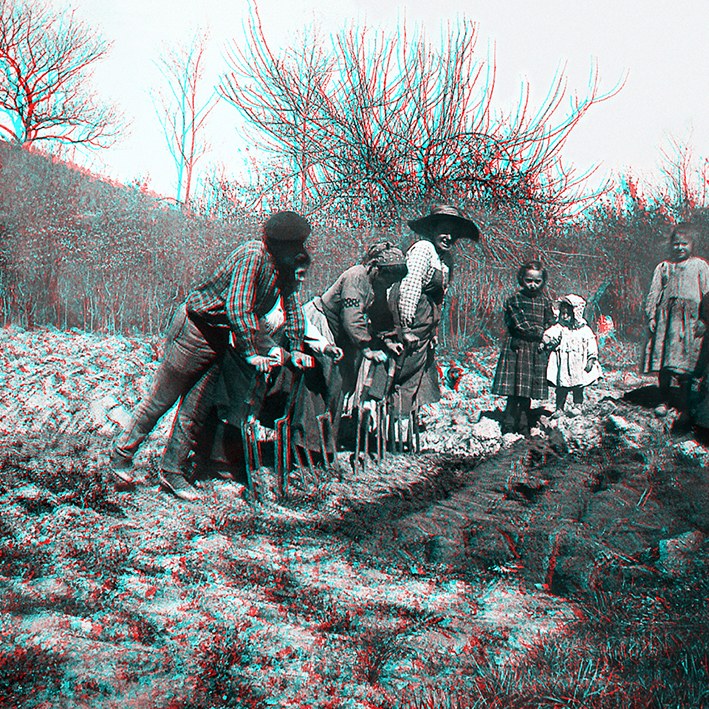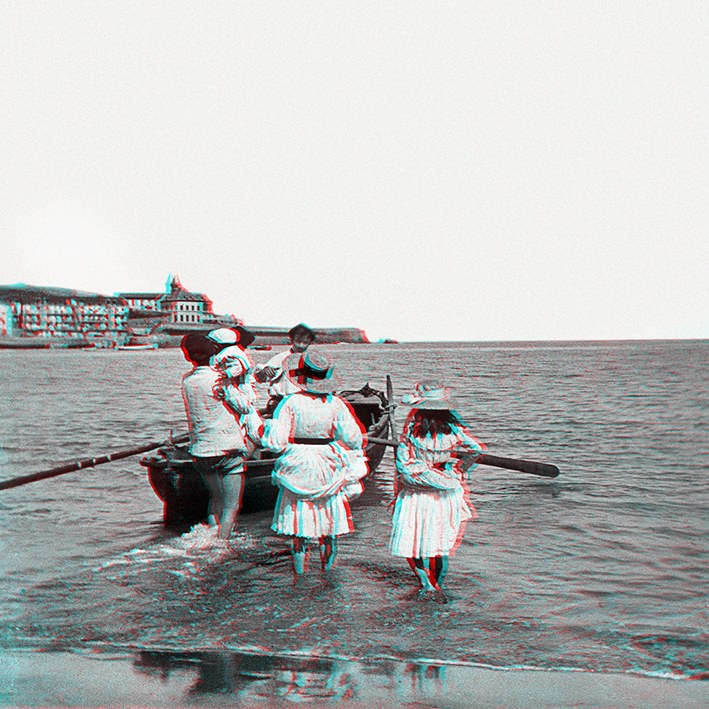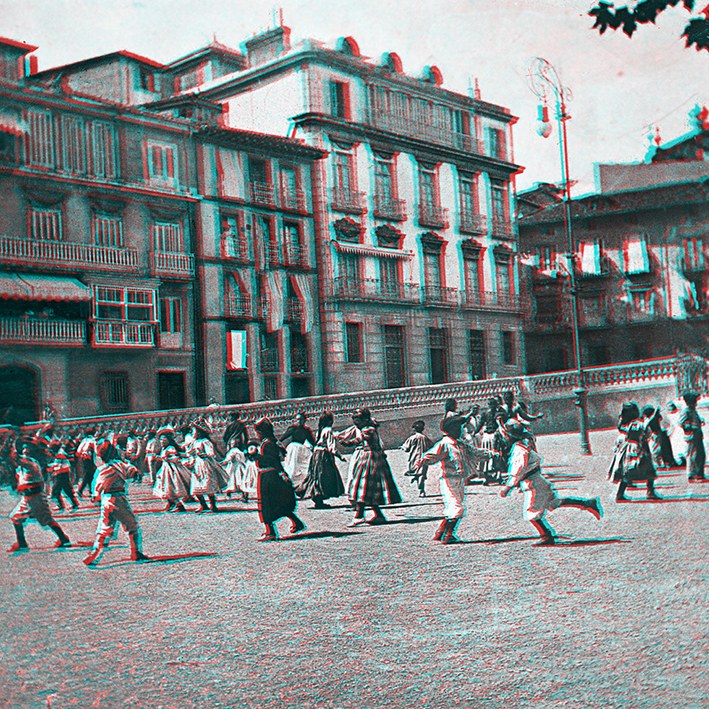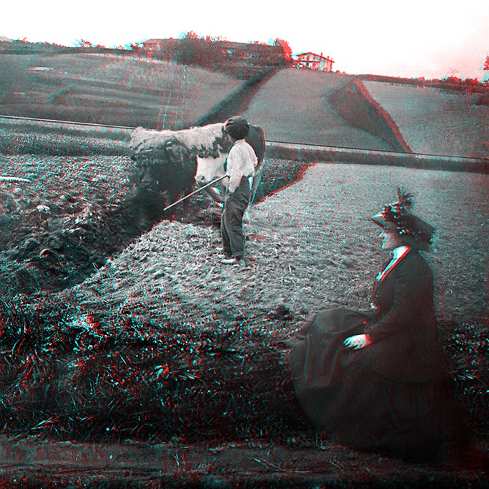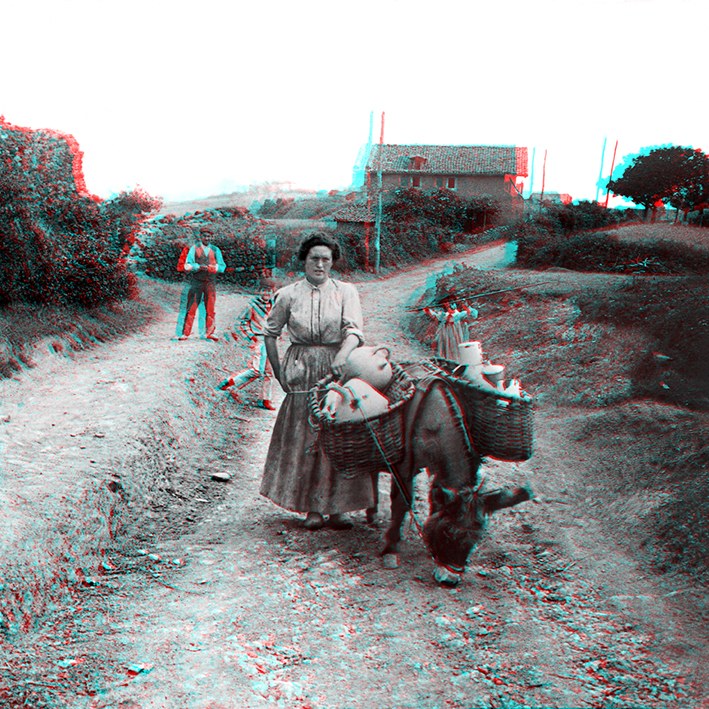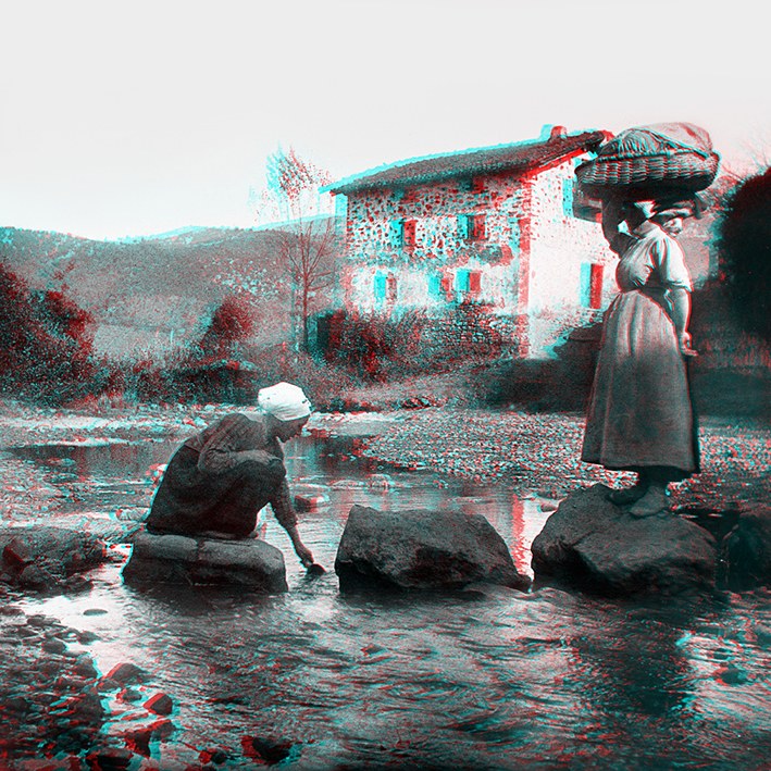 Alde batetik, formatu estereoskopikoan egindako Abaituaren iraganeko hamasei irudi daude. Anaglifo kopiak dira, erliebezko irudiak retro argiztaturiko pantailen barruan erreproduzitzeko teknika; irudi tridimentsional gisa ikusteko, bi koloreko kristalak dituzten betaurrekoak behar dira, bata urdina eta bestea gorria.