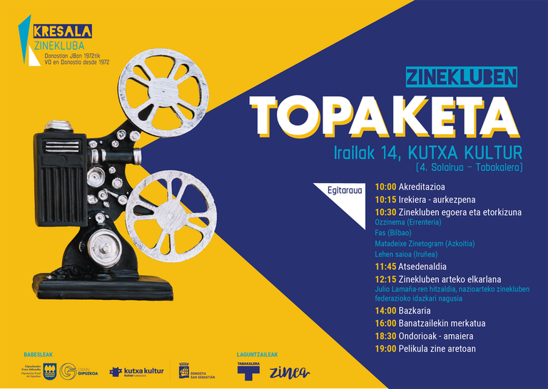 Donostiako Kresala Zineklubaren ekimenez, Euskal Herriko Zinekluben I. Topaketa egingo dute irailaren 14an Donostiako Tabakaleran. Gipuzkoako zineklubik zaharrena denak bere gain hartu du gurean aitzindaria den ekimenaren antolaketa, eta zinekluben arteko harremana sustatzeko, nork bere kezka eta erronkak besteekin partekatzeko, eta bereziki, elkar ezagutzeko baliatuko dute zita.