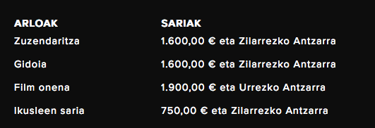 Lehiaketan hautatuak izanagatik film labur bakoitzaren egileak edo egileek 200 euro jasoko dituzte. Taldeka egindako lanen egileek zenbateko berbera jasoko dute.