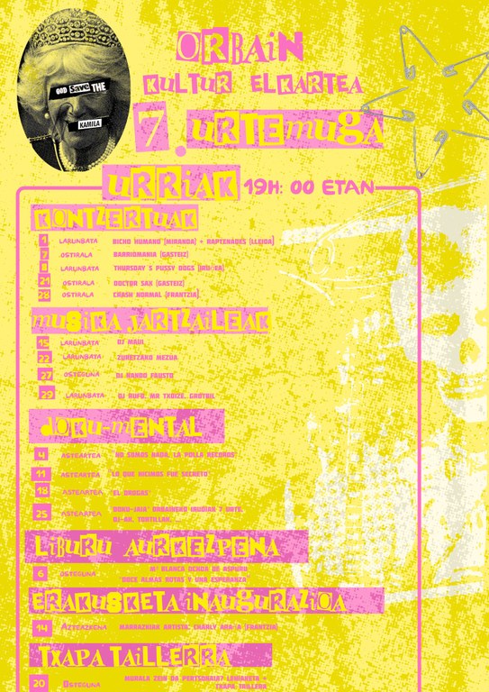Orbain Kultur Elkarteak zazpigarren urteurrena punk rocka eta kontrakultura oinarri izango duten hamabost ekitaldirekin ospatuko du, urriaren 1etik 29ra. 2015ean sortu zen elkartea, punk rockaren ondare kultural, politiko eta soziala bizirik mantentzeko asmoz, eta zazpi urteren ostean, ehun bazkide baino gehiago dituzte.