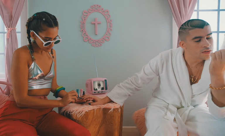 Bad Bunny belaunaldi honetako ikonoetako bat bihurtu den musikaria ikusi dezakegu bere azken bideoklipean azkazalak margotzen, Brookly Beckham Chloe Moretzekin batera begiak margotzen, hala Game Of Thrones-eko Maisie Williams Reuben Selby bere mutilarekin arropak, ilea eta makillajea konbinatzen.