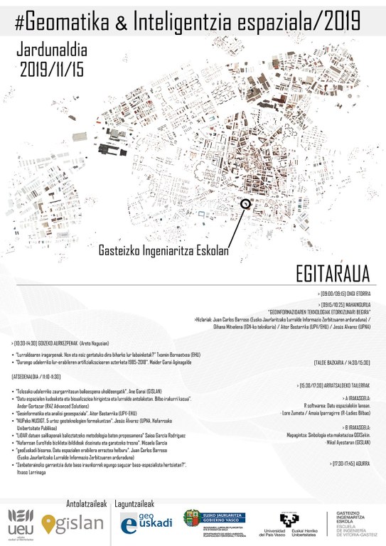 Datuen analisi espazialean interesa duen edonor gerturatu daiteke jardunaldira. Izen emateak UEUren web orrian egin daitezke eta gaiaren inguruan adibide eta esperientziak berriak ezagutu nahi dituen edonor dago gonbidatuta.