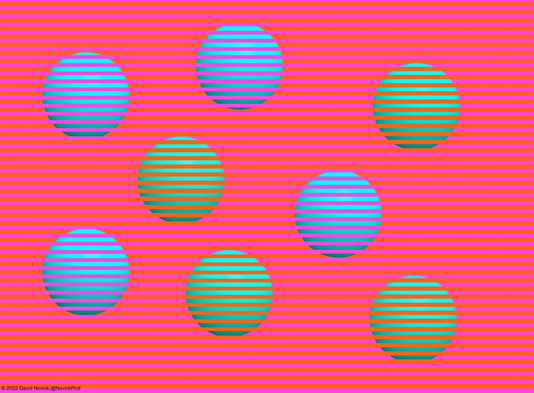 Fenomeno hau hobeto ulertzeko hemen duzu irudi berdina baina arrosa guztiak lerro urdin eta horien gainean jarrita. Guztiak kolore berdinekoak dira, ezta?