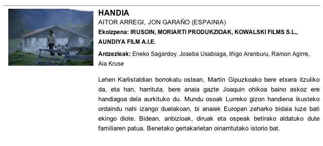 Handia filma urriaren 20an estreinatuko dute.