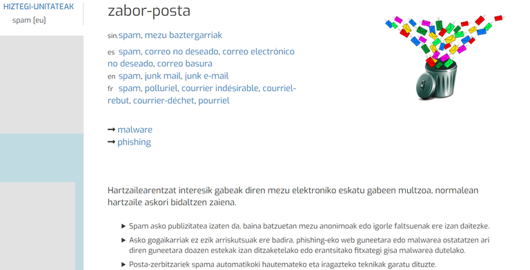 Une honetan 106 kontzeptu jasotzen ditu hiztegiak, honako atal hauetan banatuak: Internet, informatika, sare sozialak, telekomunikazioak eta zibersegurtasuna. Aurten beste 150 kontzeptu sartuko dituzte, eta, besteak beste, Game Erauntsiaren hiztegia gehitu eta osatuko da. Hala, lehengoez gain, atal hauek ere izango dira hiztegian: merkataritza digitala (bankuak eta salerosketak), marketing digitala eta bideo-jokoak.