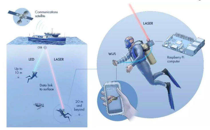 Dirudienez, LED edo laser bidez multimedia mezuak ur azpian bidaltzeko aukera eskaintzen du sare honek; LED bitartez distantzia laburrean bidali daitezke mezuak, baina laserrarekin askoz urrutirago iritsi daiteke azaldu dutenez. Lehen aldia da norbaitek datu bidalketa inolako kablerik gabe egiteko gai dela ur azpian.