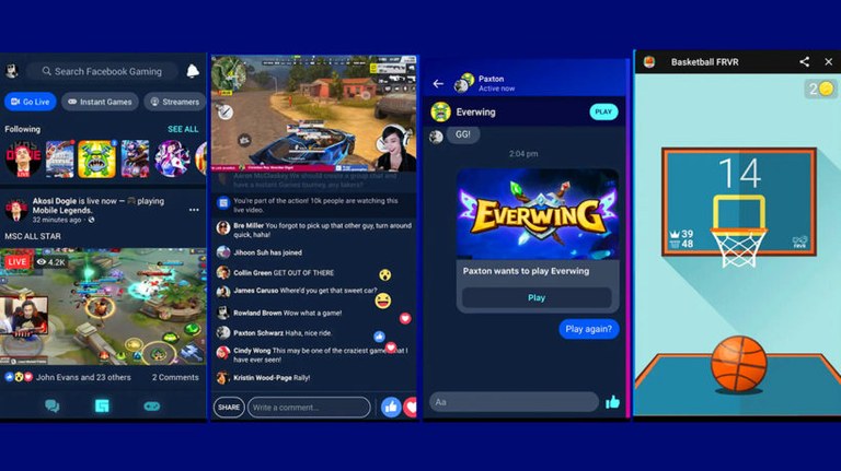Facebook Gaming app berri honek zuzenean jolasteko aukera eskaintzen du Go Live atalari esker; gainera, bideoa zuzenean Facebooken ikusteko aukera dago app-ik deskargatu beharrik gabe. Ez du iragarkirik eta bereziki mugikorrean erabiltzeko diseinatu dute.