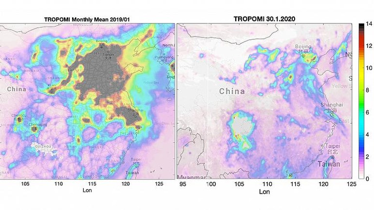 Aldea harrigarria da. Izan ere, NO2a jarduera industrialagatik eta trafikoagatik sortzen den osagai kutsakorra da. Behaketa hauek erakusten dute NO2aren kutsadura mailak Wuhan-en ohikoetatik oso behera daudela, trafiko gutxiago baitago koronabirusaren epidemiagatik.