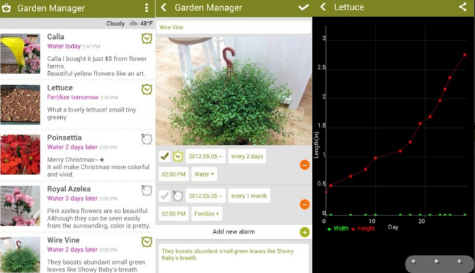 Etxean lau landaretxo soil baino gehiago badituzu, app hau oso osatua da; ureztatzeko denborez gain, ongarriak noiz eman eta noiz kimatu ere esango dizu. Gainera, inguruko lore denden inguruko informazioa emango dizu. Doan, ordainpeko hainbat ezaugarrirekin.