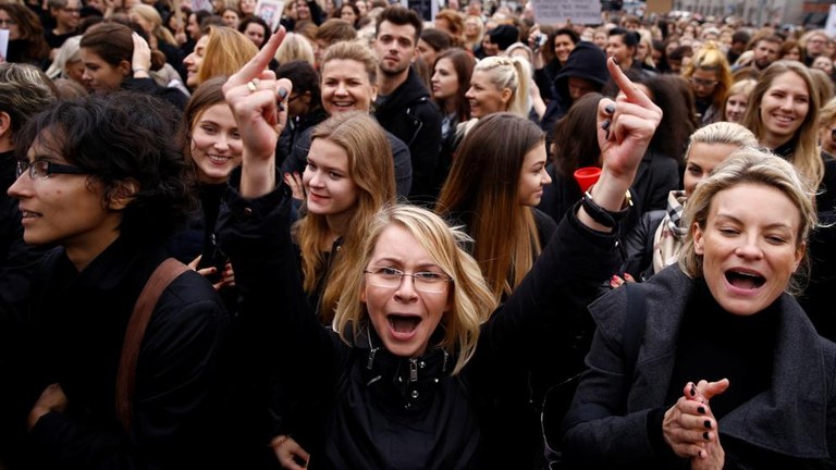 Poloniako emakumeek hainbat protesta abiatu dituzte, haien askatasuna ez ezik, osasuna ere arriskuan jartzen duelako erabaki horrek; Europaren laguntza ere eskatu dute, erabaki honek munduko emakume guztiei eragiten dielako. Gauzak horrela, 'Astelehen beltza' deituriko egunean Greba Orokorra egin zuten herrialdeko emakumeek, urriaren 3an, hain zuzen. Emakumeak kalera atera ziren beltzez jantzita.