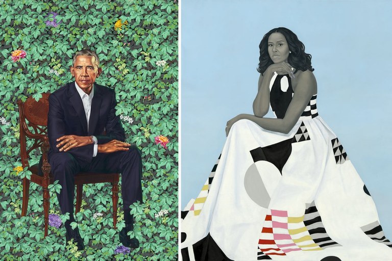 Bi artista afroamerikar aukeratu dituzte Barack eta Michelle Obamak beren erretratu ofizialetarako, eta emaitza ikusgarria eta kolorez betetakoa da. Horrela, orain arteko tradizioarekin hautsiz, Obamatarrek arte afroamerikarrari lekua egin diote Etxe Zurian.