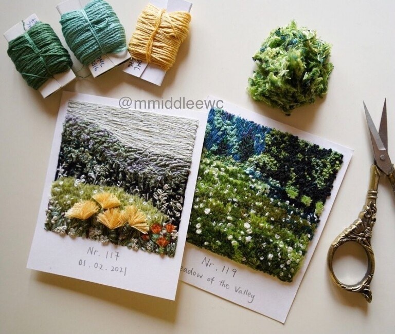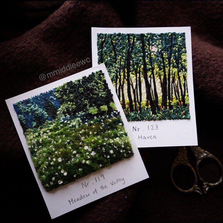 Hong Kong-en bizi den Artemis artistak Polaroid ezagunak hartu eta beste ukitu bat eman die. Paisaia koloretsuak josi ditu paper zatietan, bere oroitzapenak eta irudimena erabilita. Duela lau urte inguru hasi zen honetan, hiriko bizimodu bizkorrari lasaitasuna eman nahian eta patxadaz sortzeko beta hartuz.