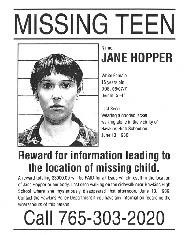 Telesailaren Instagrameko kontuan irudi bat publikatu dute eta bertan desagertuta dagoen nerabe bat agertzen da: Jane Hopper AKA Eleven. Pertsonaiaren jaioteguna agertzen da bertan, azkenekoz institutu inguruan ikusi zutela, eta desagertu egin zela misteriotsuki. Hawkins herriko poliziari deitzeko deia egiten du informaziorik izanez gero, eta aurkitzen duenarentzako diru-saria ere bada.