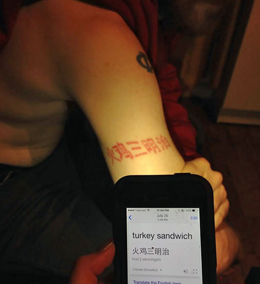 Tatuajearen benetako esanahia "Indioilar sandwicha" dela ohartzean...