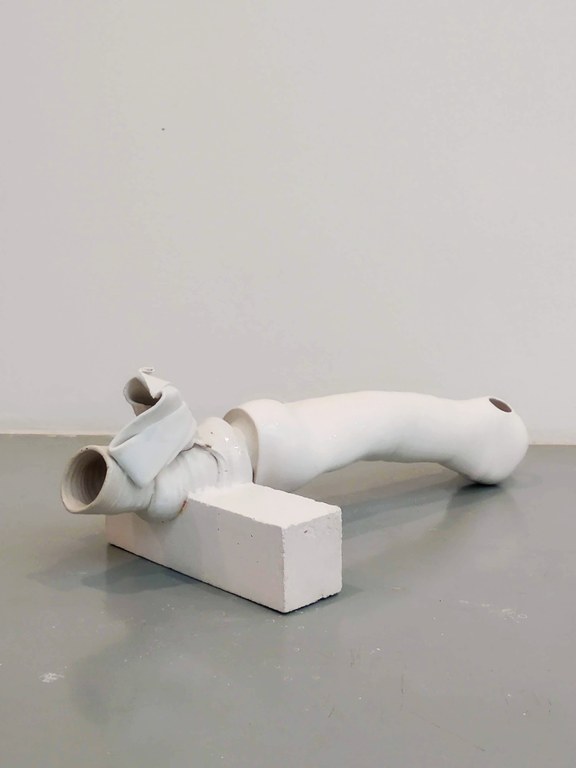 Ontzigileen teknikaren bitartez egindako hiru eskultura ere paratu dituzte bitrinetan. Zeramika eta portzelana, eta buztingilearen tornua erabiltzen ditu lan horiek osatzeko. Pintura eta eskulturaz gain, lan-prozesu esperimentalak erakusten dituzten irudiak proiektatzen dira.