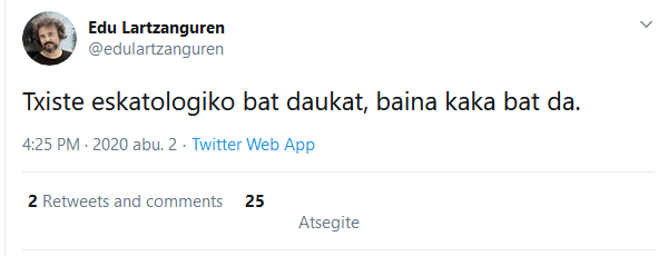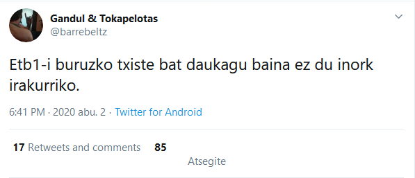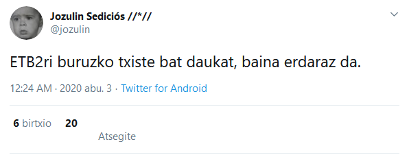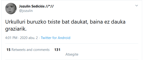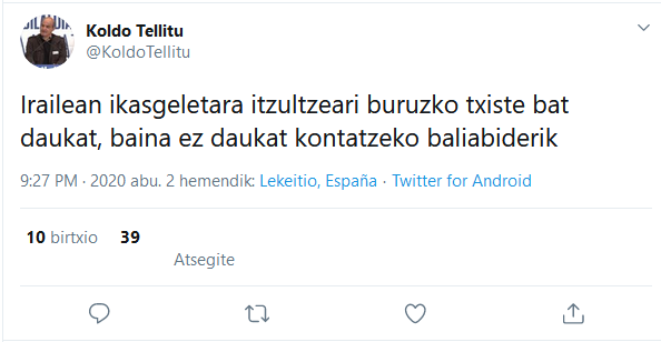 ![Screenshot_2020-08-05 Koldo Tellitu Twitterren Irailean ikasgeletara itzultzeari buruzko txiste bat daukat, baina ez daukat[...].png](https://www.gaztezulo.eus/albisteak/screenshot_2020-08-05-koldo-tellitu-twitterren-irailean-ikasgeletara-itzultzeari-buruzko-txiste-bat-daukat-baina-ez-daukat.png/@@images/2e0067a9-806d-4162-8843-857b82dc7bd2.png)