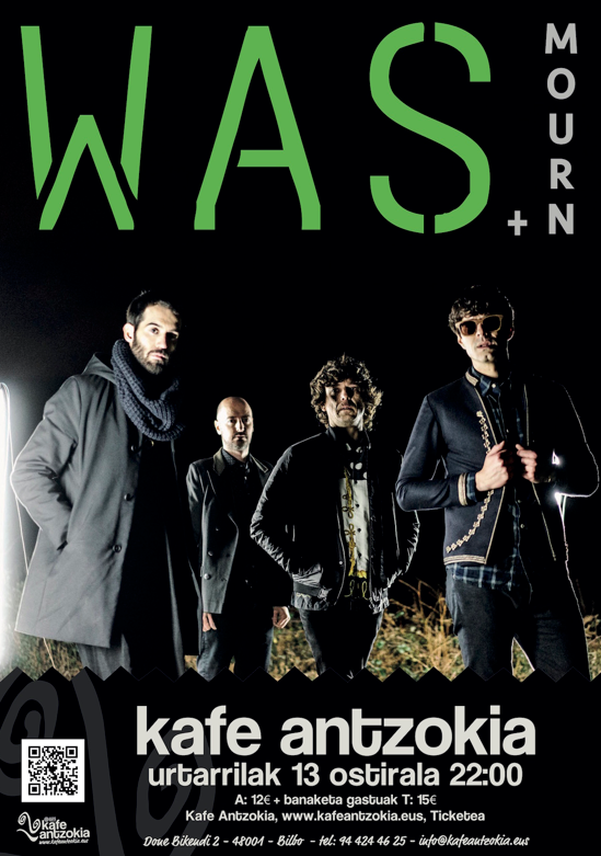 WAS eta Mourn taldeekin zita duzu Bilboko KafeAntzokian ostiralean, hilak 13, 22:00etan. Sarrerak 15 euro balio baditu ere,aurresalmentan 12 eurotan lortu dezakezu. Ondo pasa!!