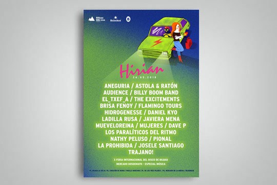 HIRIAN emanaldi hauek izango dira: Aneguria, Astola & Ratón, Audience, Billy Boom Band, Brisa Fenoy, Daniel Kyo, Dave P, El_txef_a, Flamingo Tours, Hidrogenesse, Javiera Mena, Josele Santiago, Ladilla Rusa, La Prohibida, Los Paralíticos del Ritmo, Mueveloreina, Mujeres, Nathy Peluso, Pional, The Excitements eta Trajano!