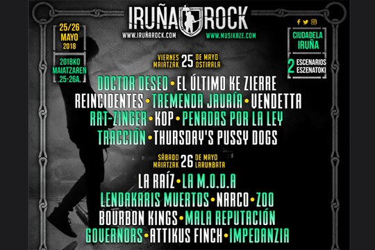 Aurten Ziudadelak Iruña Rock jaialdiaren hartuko du, hamabi talde eta tokiko zein estatuko rock musikako artistekin: La Raíz, La M.O.D.A, Doctor Deseo, Narco, Tremenda Jauría, Rat-Zinger, Bourbon Kings, Vendetta, Impedanzia, Boufbon Kings, Reincidentes, Penadas por la Ley, Mala Reputación, Governors, Kops, Attikus Finch, Thursday’s Pussy Dogs, El último ke zierre eta Tracción. Kontzertuak maiatzaren 25an, ostirala, eta maiatzaren 26ean, larunbata, egingo dira.