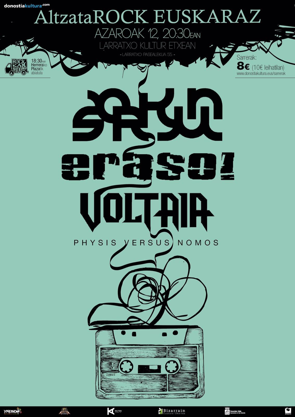 Altzatarock jaialditzarra galdu ezineko besteemanaldi bat duzu larunbatean. 20.30ean hasita, Larratxo Kultu Etxean bildukodira Sorkun, Eraso!, Voltaia, eta Physis Versus Nomos. Eman egurre!