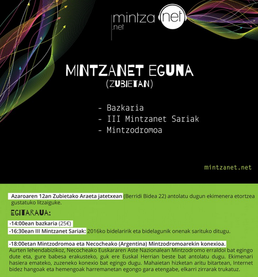 Gainera, III Mintzanet sariak emango dituzteeta euskara Internet bidez praktikatzeko plataforma honetan parte hartzen dutenbi pertsonen lana aitortuko dute: bidelaria eta bidelaguna.