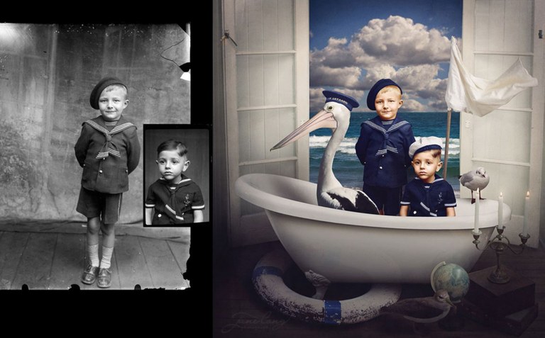Jane Long Australiako argazkilaria eta artista digitala da, eta argazki manipulazioan espezializatu da. Jarraian aurkezten dizuegun “Dancing with Costică” argazkilaritza seriean, denboran bidaia fantastikoa proposatzen digu Longek; Costică Acsinte (1897-1984) argazkilari errumaniarrak egindako zuri-beltzeko argazkiak hartzen ditu oinarri, ondoren moldatu eta irudi koloretsuz osaturiko mundu miragarriak sortuz. Longen esanetan, argazkiei bizia bueltatzea du helburu seriak, baina baita istorio bat ematea ere.