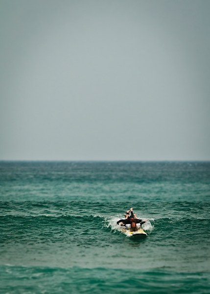 Eva Agirrek surfa eta dantza garaikidea egiten zituen. Karlos Otamendik olatu handiak hartzea zuen gustuko. Uda batez, taula handi bat alokatu eta uretan sartu ziren elkarrekin, iruditan ikusita zutena probatzera. Geroztik, itsasoko orekari bihurtu dira: taula, Karlos eta Eva.