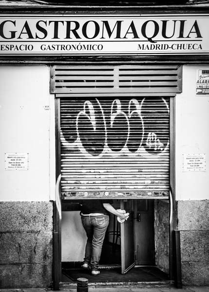 Biznaga taldearen doinuak lagun zituela ateratako argazkiotan Madrilen aurpegi ezezaguna dakarkigu Galder Izagirrek; abuztuko beroak zipriztindutako kaleak eta bizilagunak.