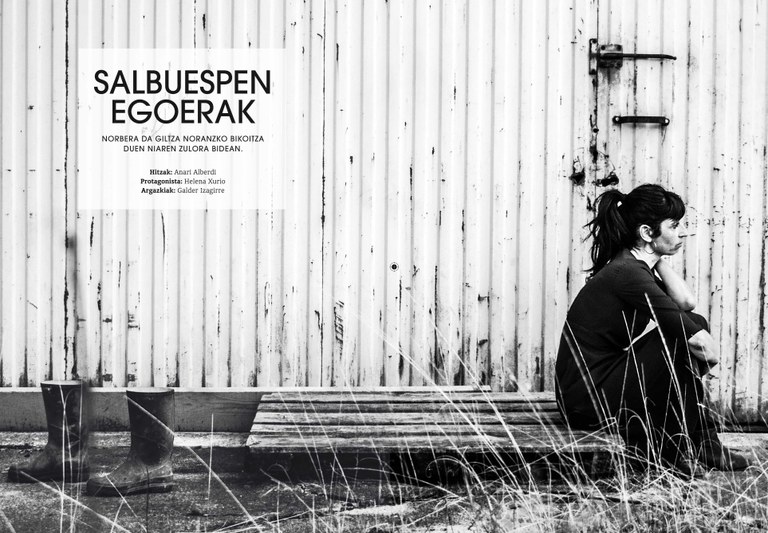 Salbuespen egoerak Salbuespen egoerak https://www.gaztezulo.eus/argazkiak/salbuespen-egoerak https://www.gaztezulo.eus/@@site-logo/logoa.png 2016/03/14 Leire Palacios. Hitzak: Anari Alberdi. Protagonista: Helena Xurio. Argazkiak: Galder Izagirre «Norbera da giltza noranzko bikoitza duen niaren zulora bidean»