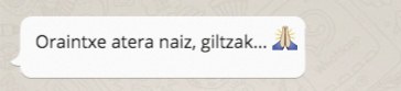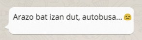 – Lagunak niri: “Zer! beti bezala bost ordu lehenengo etorri zara ezta? –barreak– hori ez da puntuala izatea motel!”